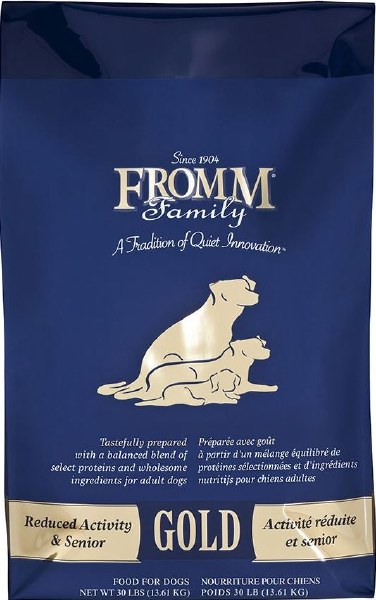 Fromm Family Reduced Activity & Senior Gold Food for Dogs is formulated to provide your less active adult dog or senior dog with complete and balanced nutrition.